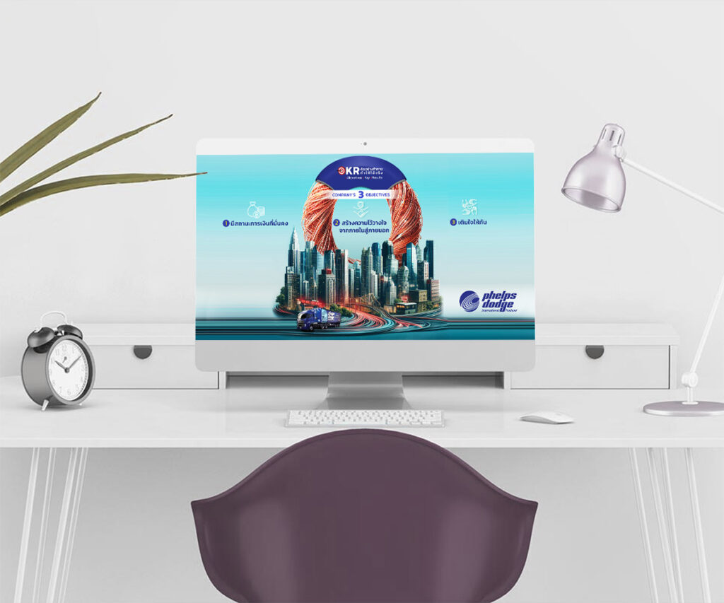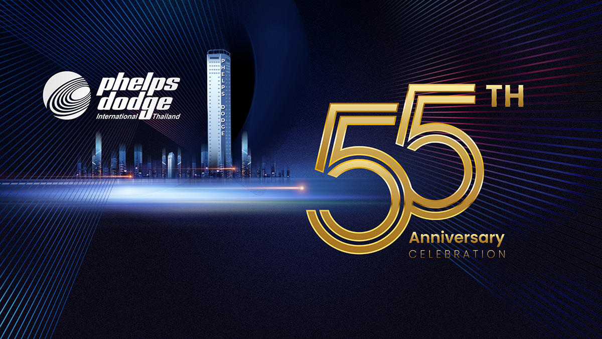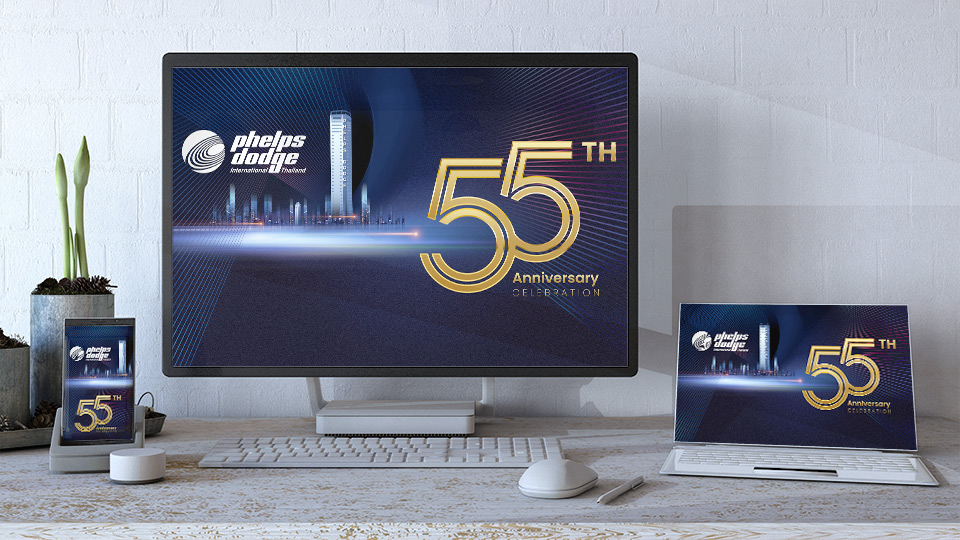 The 55th anniversary desktop wallpaper for Phelps Dodge International (Thailand) Ltd. has been thoughtfully designed to commemorate this significant milestone while reinforcing the company’s brand identity across all employee workstations.