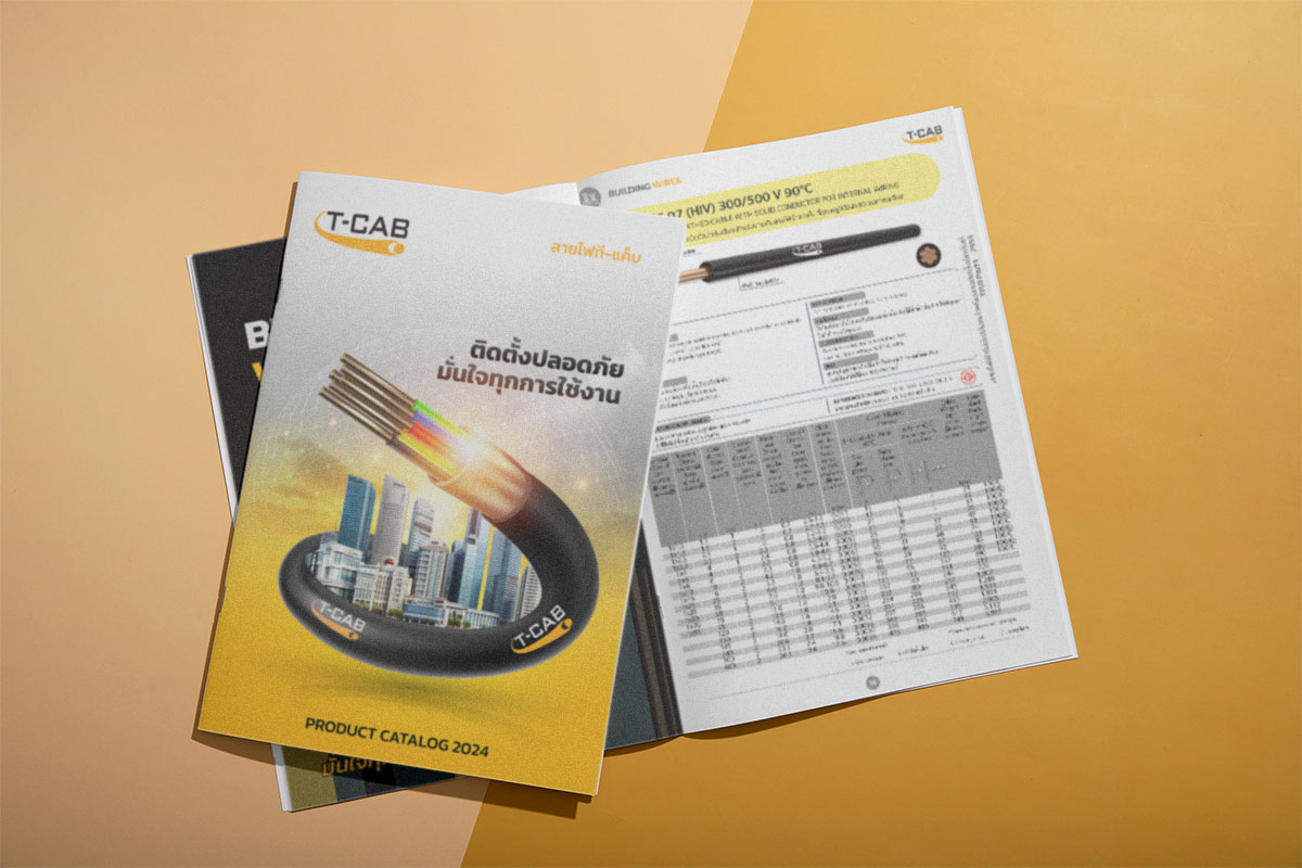 The T-CAB 2024 product catalog cover is strategically designed to reflect the company’s core values of safety, reliability, and innovation in electrical cabling solutions.